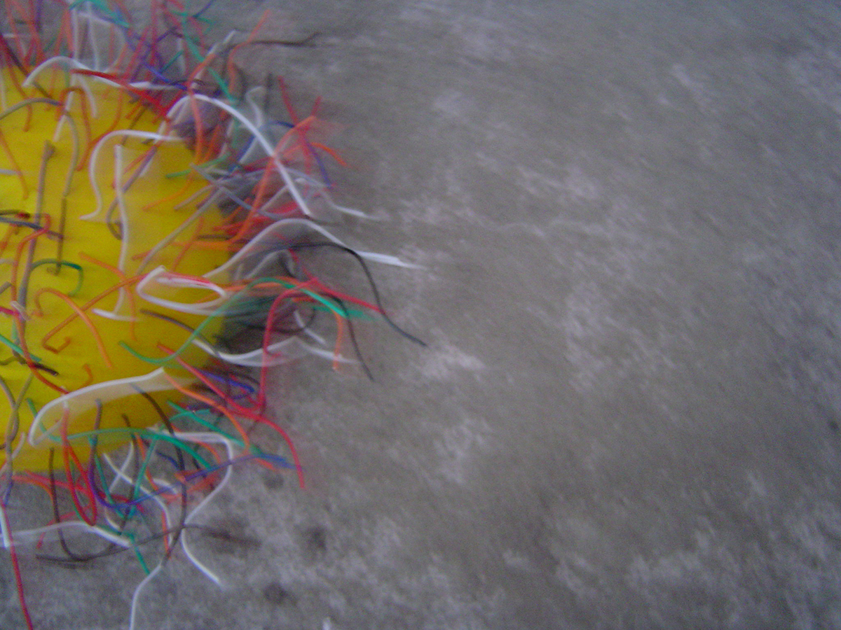 Fotografías, realizadas a partir de la muestra Futbol 5, esferas con incrustaciones de dispositivos electrónicos. El juego es imposible, no se trasladan. En este caso la cámara es una prolongación de mi cuerpo, mi movimiento es el que construye otro juego.