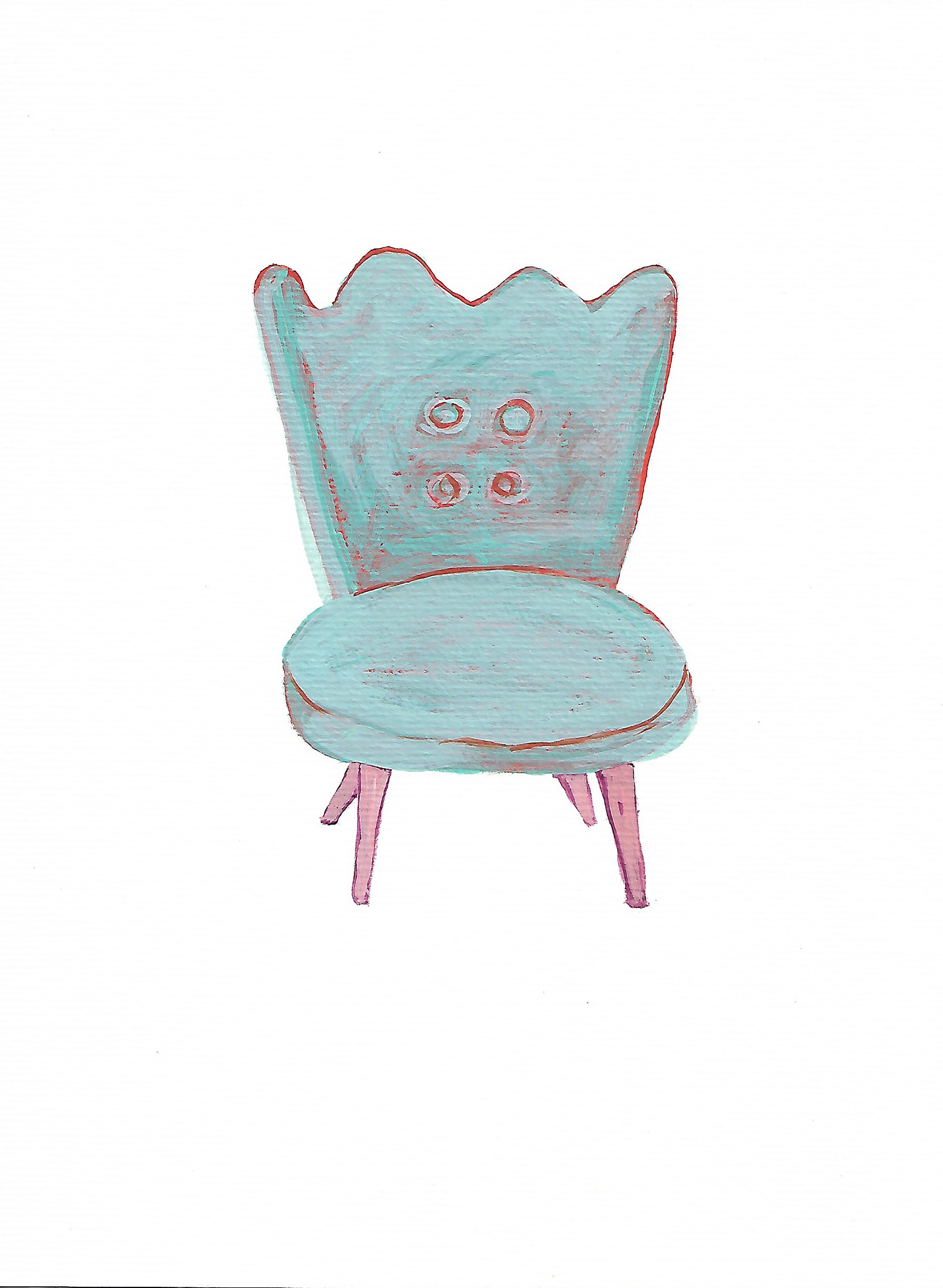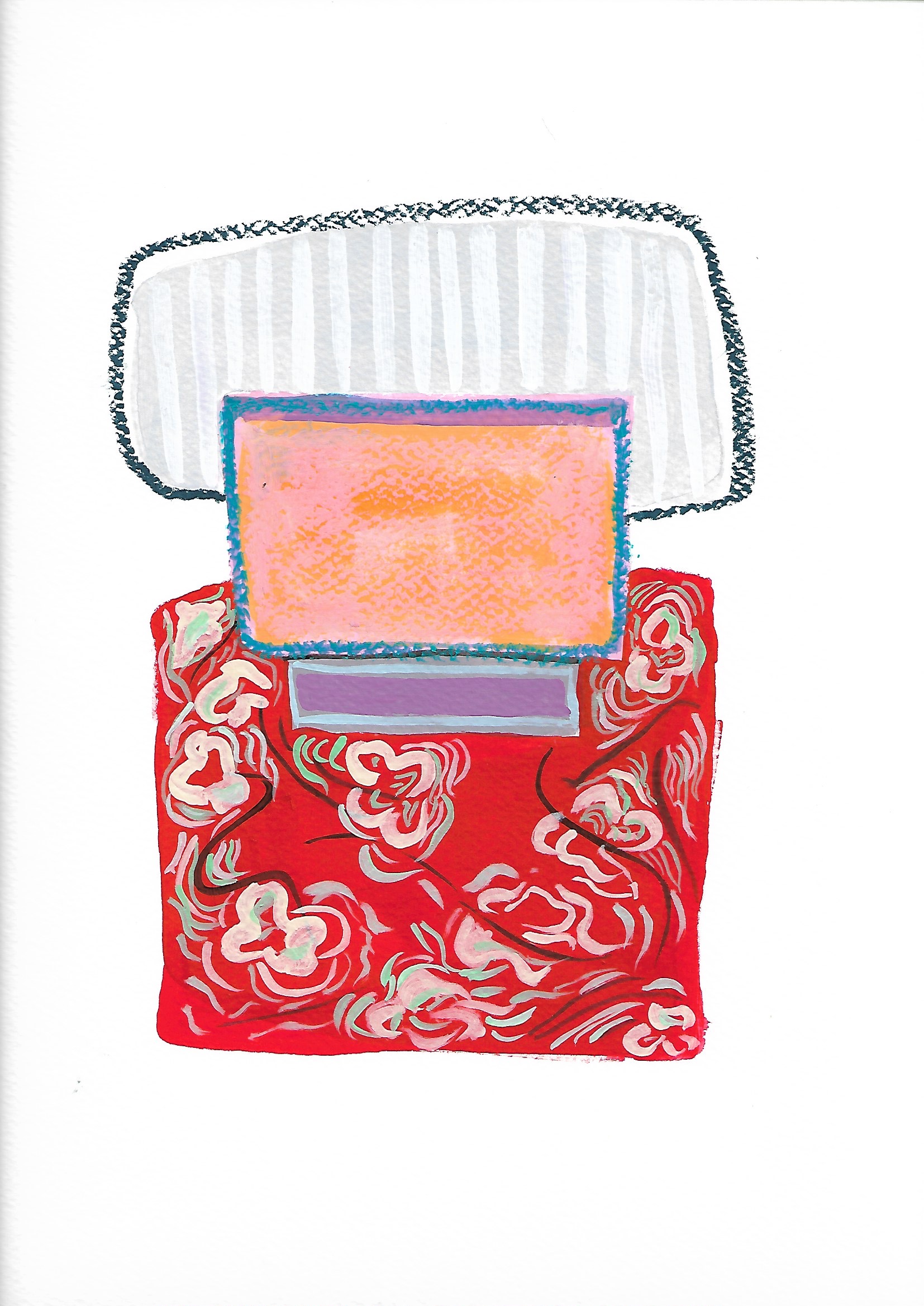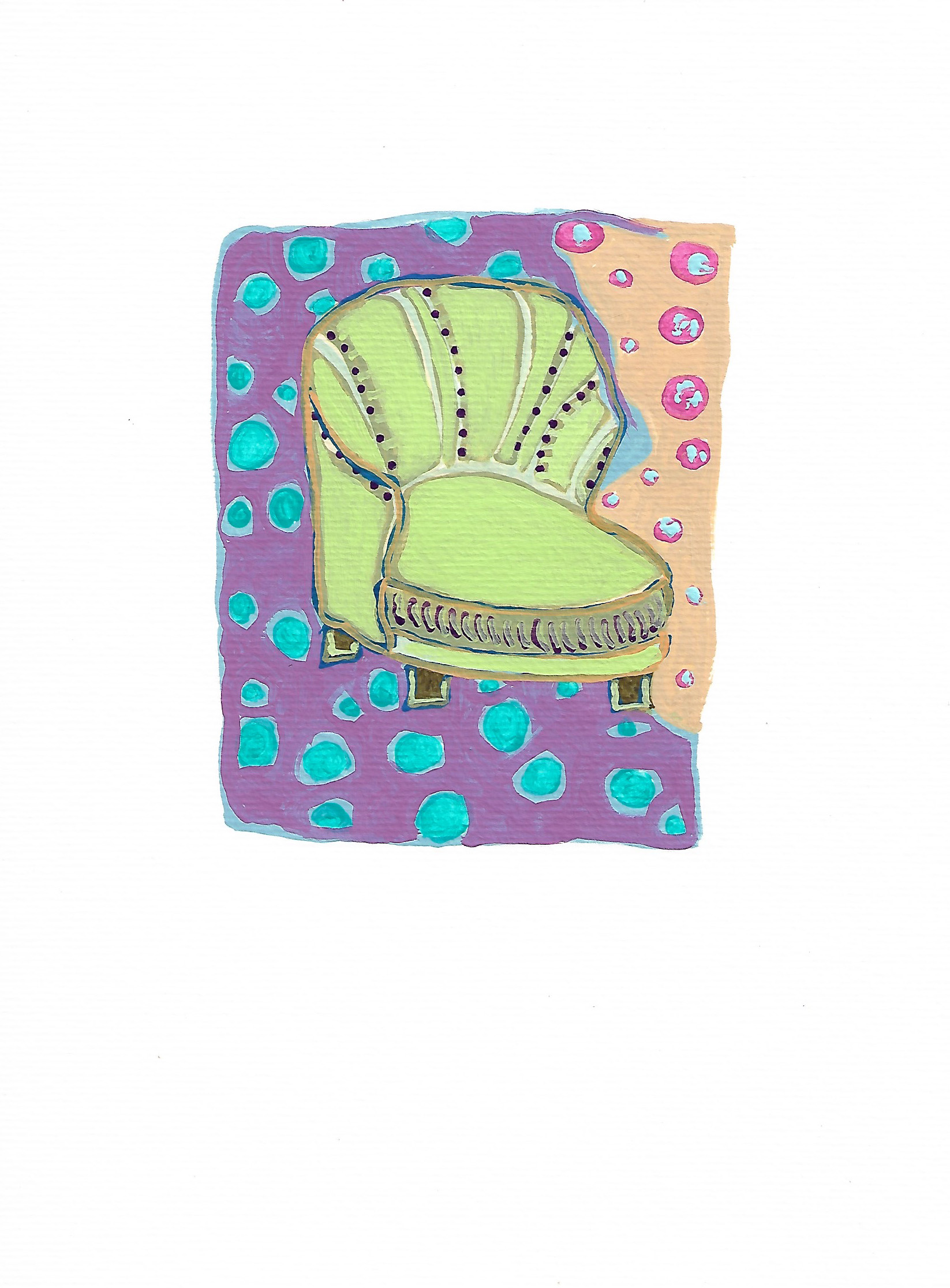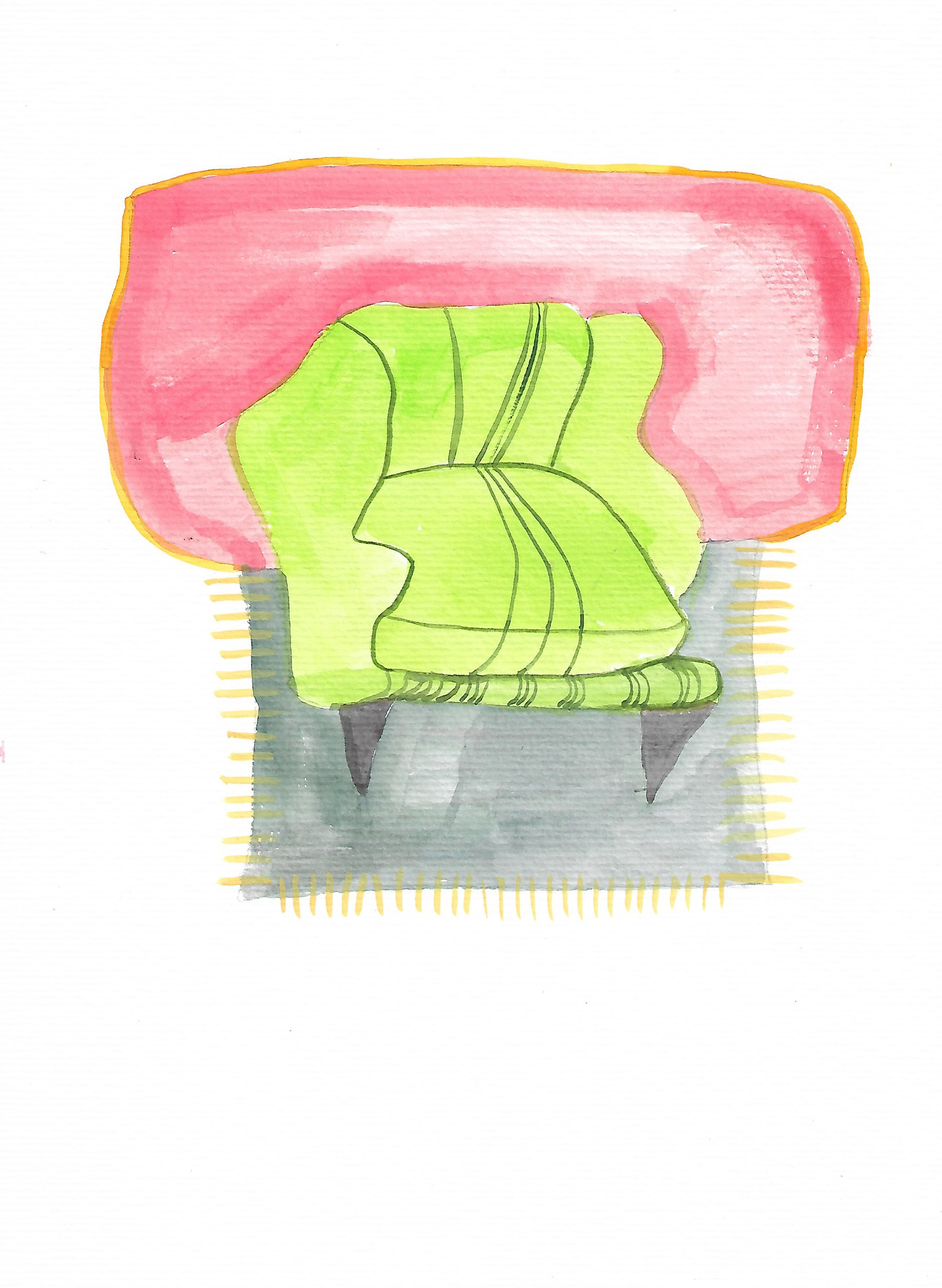 Serie de acuarelas, acrílicos y crayones dan vida a objetos cotidianos. Sillones, almohadones, alfombras y la luz característica de San Francisco se fusionan con cada trazo de color. Los colores no son estáticos ni predecibles, fluyen y se entrelazan creando texturas y atmósferas propias.
