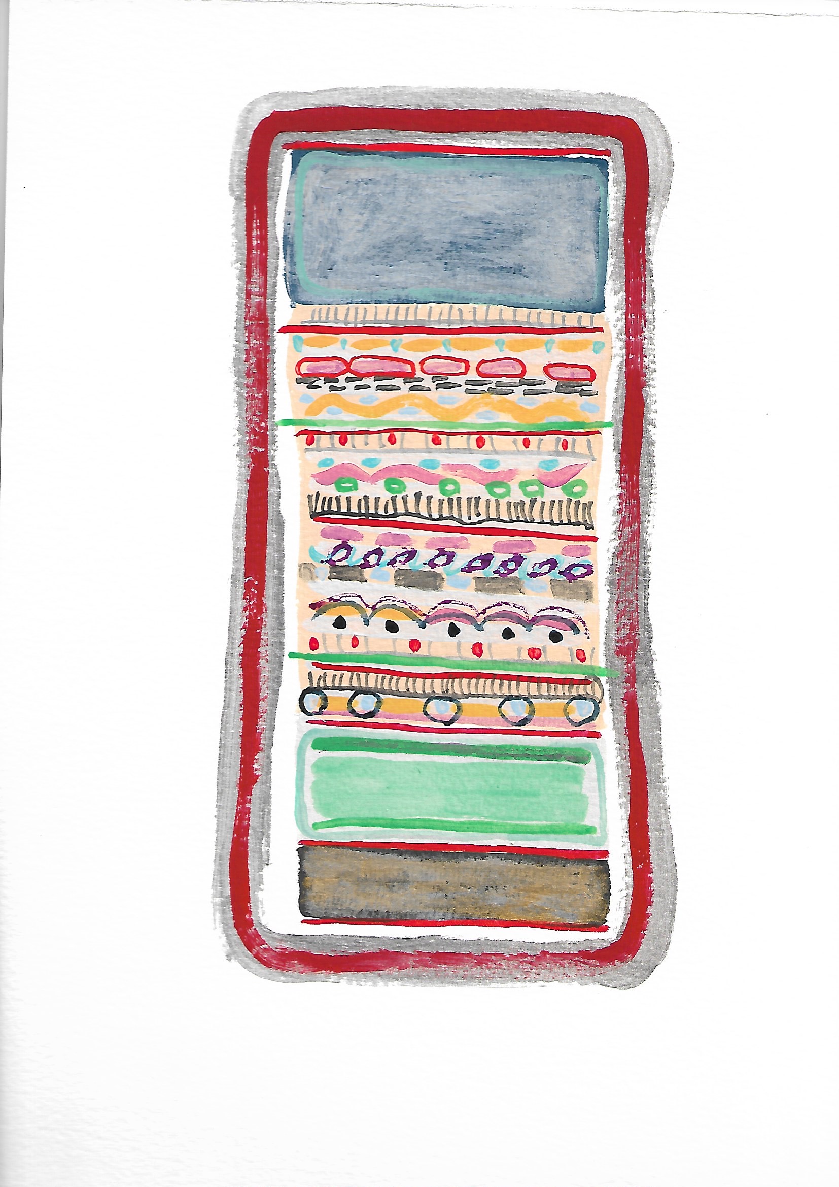 A series of watercolors, acrylics, and crayons bring everyday objects to life. Sofas, cushions, rugs, and the distinctive light of San Francisco blend with every stroke of color. The colors are not static or predictable; they flow and intertwine, creating unique textures and atmospheres.